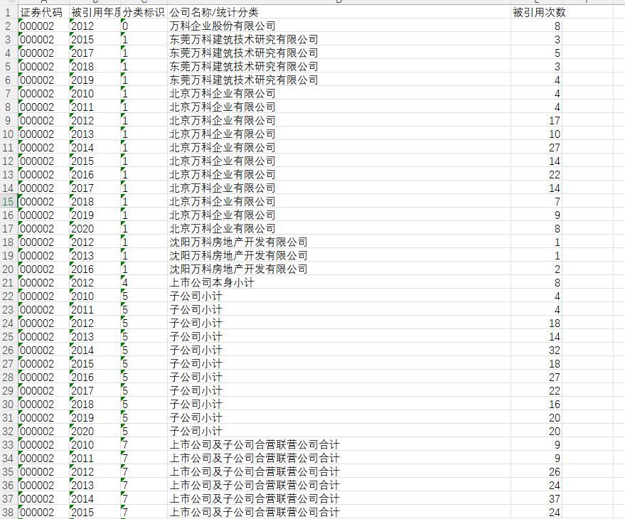 1993-2022年绿色专利分年度绿色专利被引用次数统计数据.xlsx