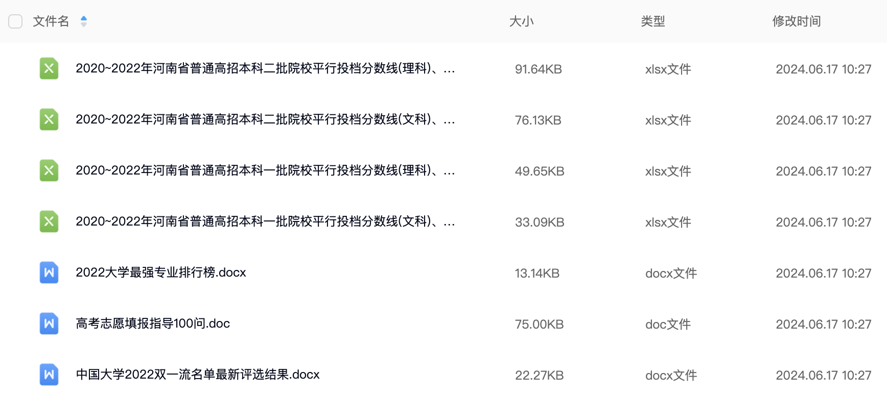 河南省江2024高考志愿填报2017-2023年全国高校录取分数线专业投档线高等大专院校招生批次线选考科目录取人数一分一段表Excel数据