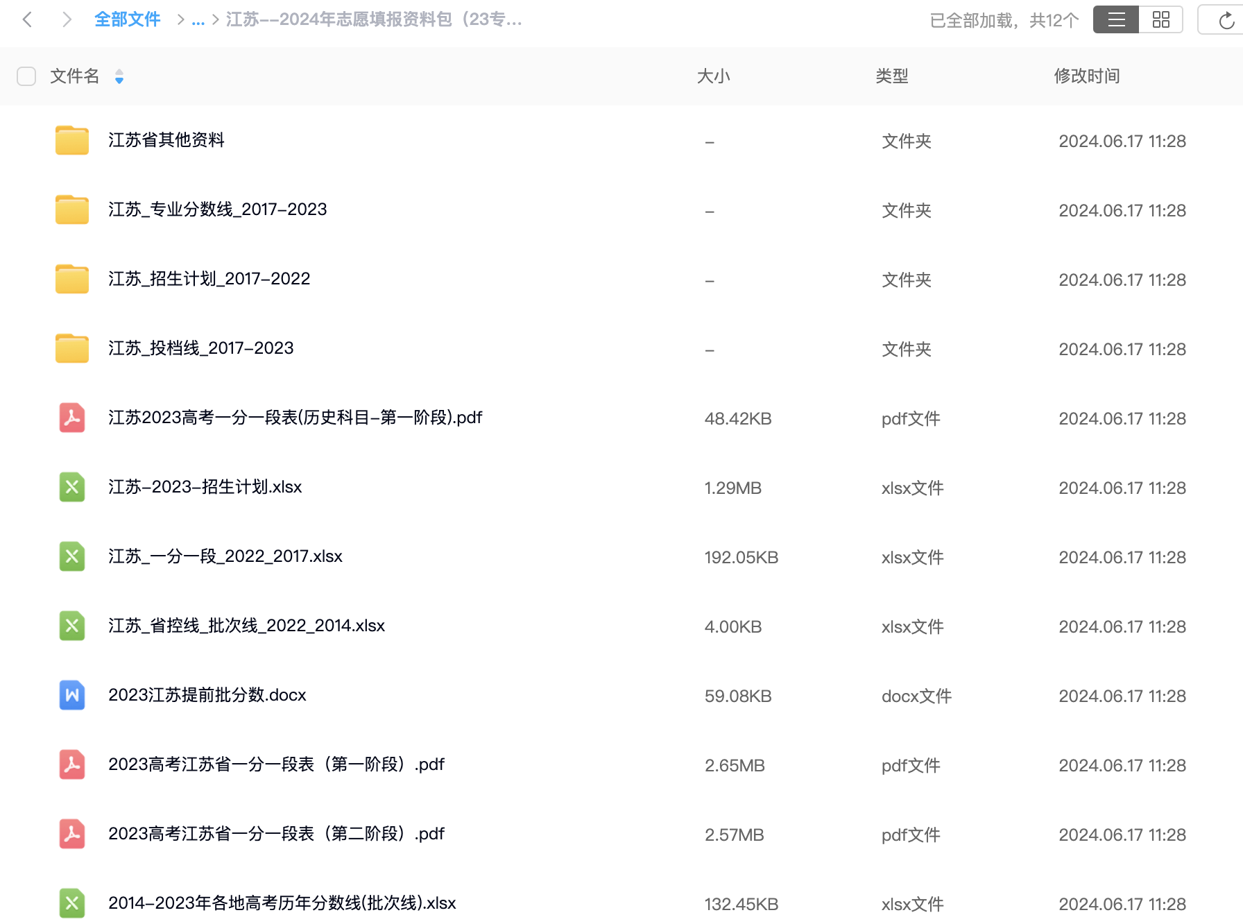 江苏省江2024高考志愿填报2017-2023年全国高校录取分数线专业投档线高等大专院校招生批次线选考科目录取人数一分一段表Excel数据
