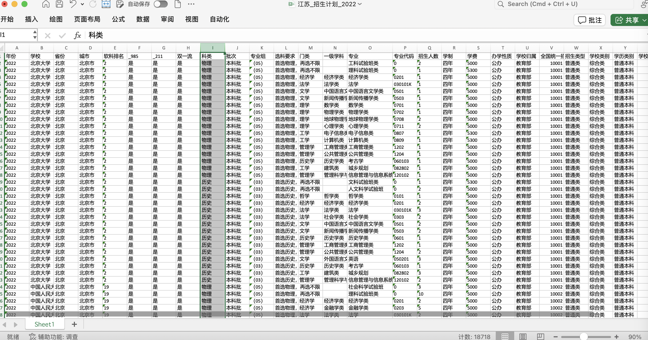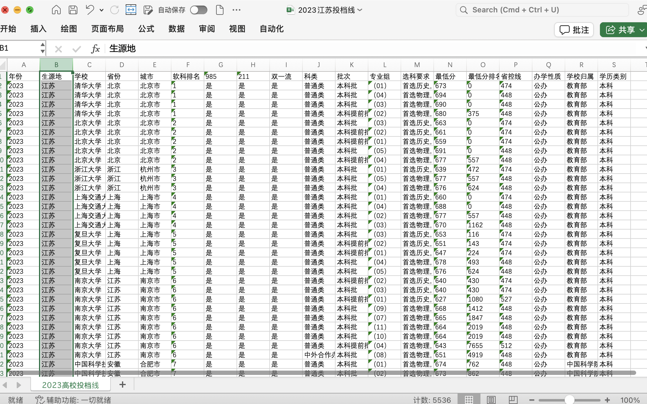 2024年江苏省高考志愿填报2017-2023江苏省大学招生计划专业分数线投档线电子版Excel