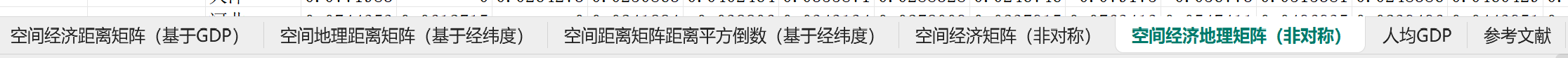 全国31个省份空间权重矩阵-地理相邻、(公路、铁路)地理距离、经济空间权重矩阵