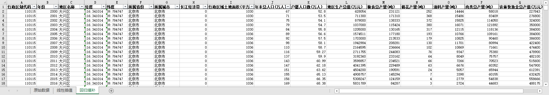 excel数据文件包原始数据(由于多年度指标不同存在缺失值)、线性插值、回归填补三个版本,提供您参考使用。