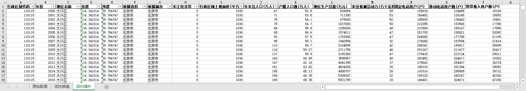 excel数据文件包原始数据(由于多年度指标不同存在缺失值)、线性插值、回归填补三个版本,提供您参考使用。