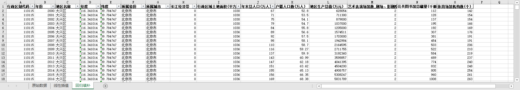 excel数据文件包原始数据(由于多年度指标不同存在缺失值)、线性插值、回归填补三个版本,提供您参考使用。