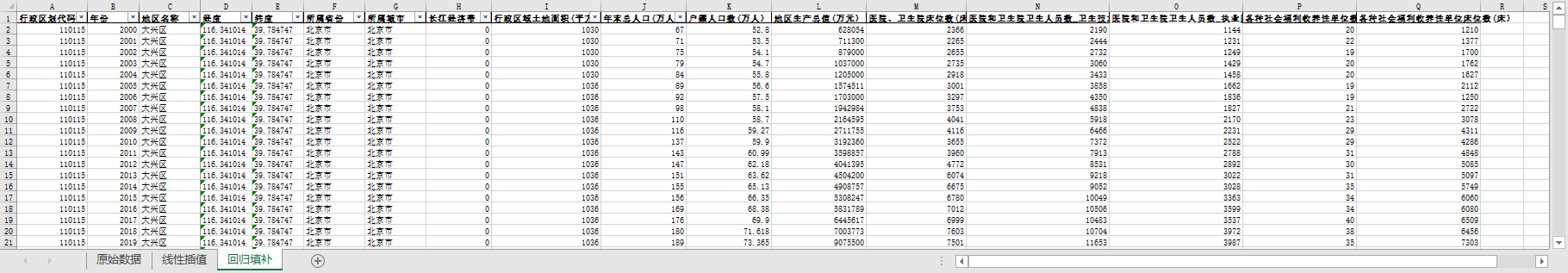 excel数据文件包原始数据(由于多年度指标不同存在缺失值)、线性插值、回归填补三个版本,提供您参考使用。