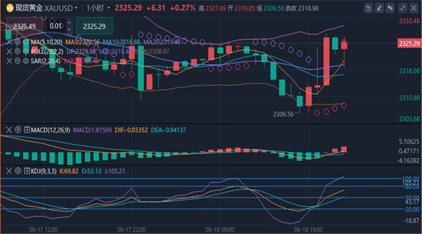 【黄金技术面分析】:从技术面来看,昨日现货黄金日线结构收一根阴线,实现了阴阳交替走势,但与前面的走势相结合,但各项指标形态却没有发生改变,目前短期均线仍保持死叉,尤其是10日均线于2325附近构成短期压力,布林中轨2335形成强压,其它各周期指标维持空头排列,布林带整体又有意向下缩口,MACD指标保持死叉,绿柱势能持续减量,KDJ指标三线粘合形态,虽然日线整体结构技术指标空头偏强,但是有反弹修正需求。黄金四小时线来看,黄金在跌至2286附近后开始走反弹,随后冲高2341附近后回落,逼近2295关口,然后反弹至2336附近,再度回落下来,黄金1小时图是三角形整理形态,震荡幅度越来越小,变盘在即综合来看,今日黄金短线操作思路上建议反弹做空为主,回调做多为辅,上方短期重点关注2335-2340一线阻力,下方短期重点关注2313-2308一线支撑。