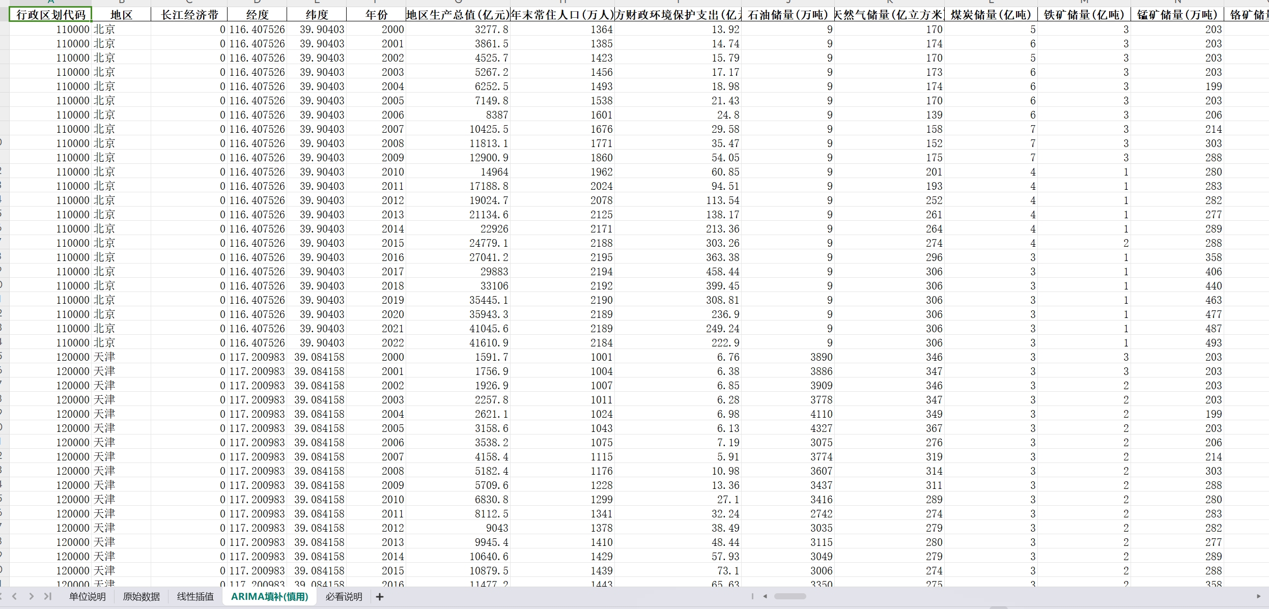 数据整理:内含原始数据、线性插值、回归填补三个版本
