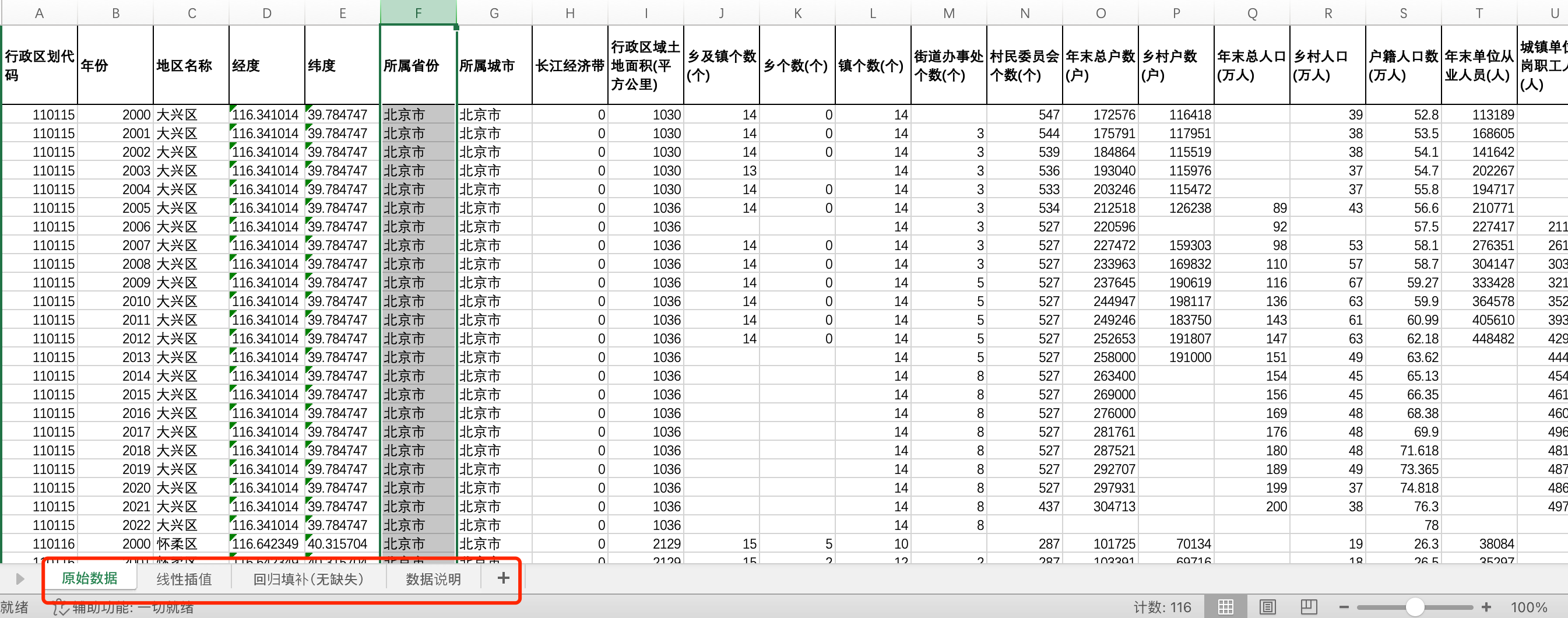 数据格式:Excel数据文件包含原始数据(由于多年度指标不同存在缺失值)、线性插值、ARIMA填补(无缺失)三个版本,提供您参考使用。其中,ARIMA填补无缺失值。
