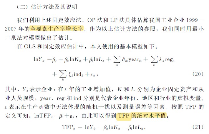 但要从这里得到TFP的绝对水平值,可以采用如下的方法: