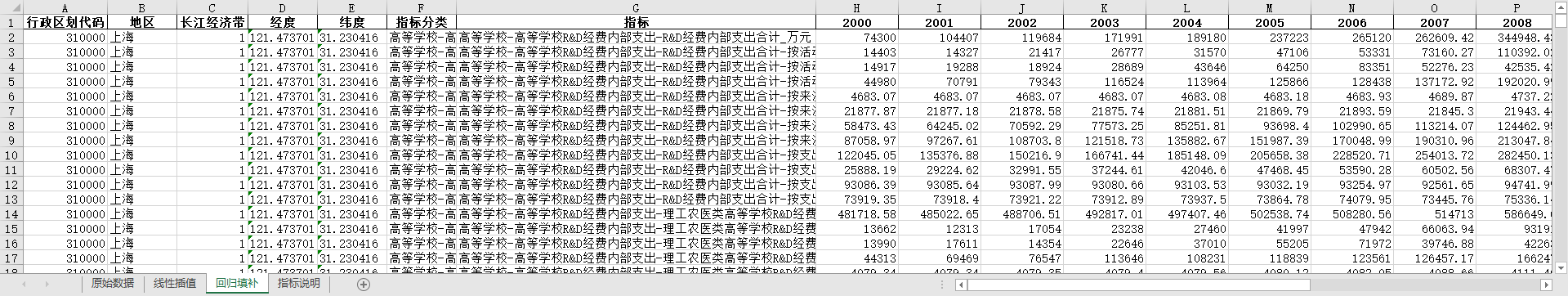 excel数据文件包原始数据(由于多年度指标不同存在缺失值)、线性插值、ARIMA填补三个版本,提供您参考使用。