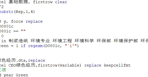 2.计算说明:参考C刊《经济管理》卢建词(2022)老师的研究,本文选取 CEO 为分析对象。 从高管个人简历数据中手工查找 CEO 以前是否接受过“绿色” 相关教育或从事过“绿色” 相关工作,若企业CEO 具有绿色经历,Green 取值 1,否则,取值 0。绿色相关教育是根据其受教育专业是否属于制浆造纸专业、环境专业、环境工程专业、环境科学专业等判断;绿色工作经历是根据其工作履历或岗位是否涉及或属于环保部、环境保护部,环保委员会成员,企业污染防治负责人等判断。