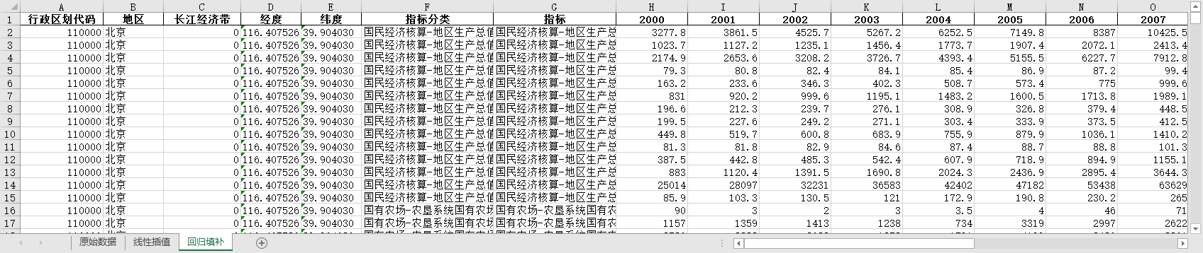 excel数据文件包原始数据(由于多年度指标不同存在缺失值)、线性插值、ARIMA填补三个版本,提供您参考使用。