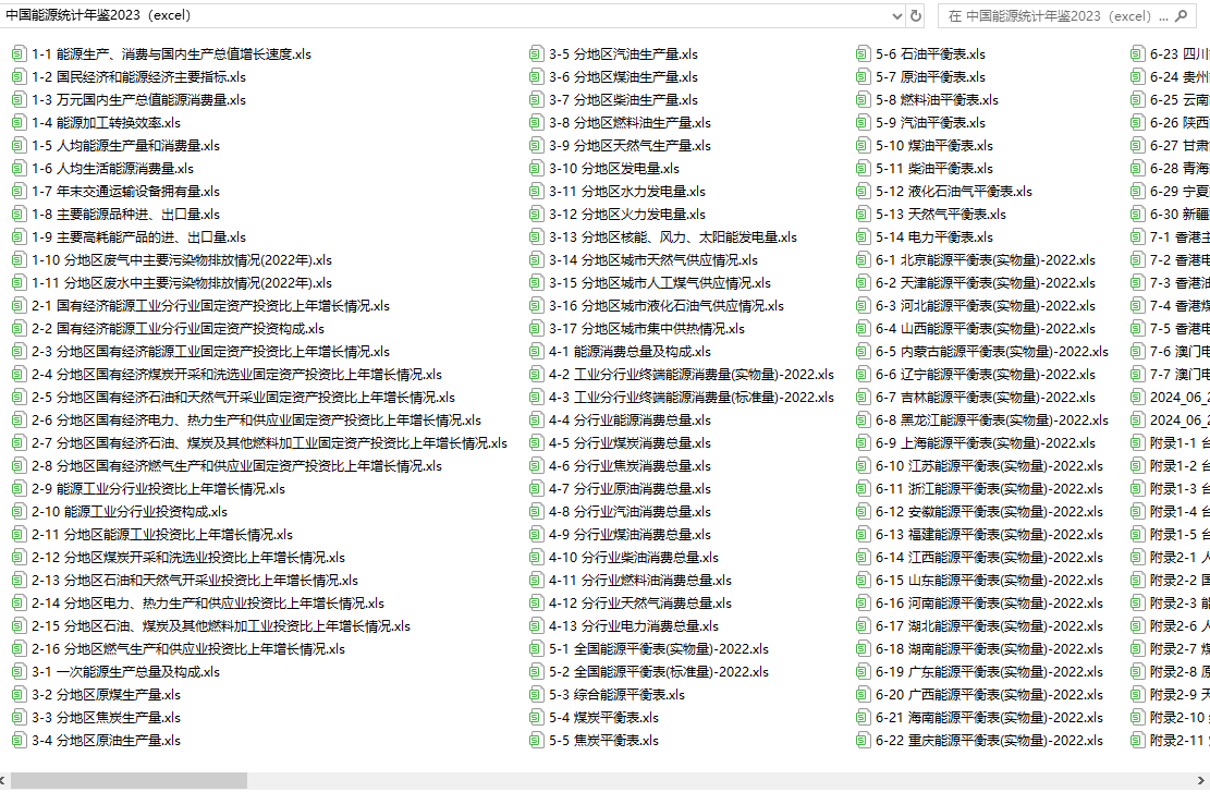 中国能源统计年鉴2023(excel格式)