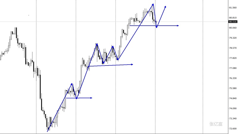 美原油市场上周开盘在78.382美元/桶,后行情先回落,周线最低给到了77.918美元/桶,后行情强势拉升,周线最高触及到了82.152美元/桶,后行情尾盘回落,周线最终收线在了80.912美元/桶后,原油本周预期先跌后涨。原油四小时图上一波底部回升之后,上升动能有所减缓,短线伴随二次迂回回踩确认,油价以中轨做为支撑点,回踩确认后再行做多。综合以上分析,张亿富认为:原油再次冲高遇阻,多头面临调整,今日操作上考虑先空后多策略,上方关注80.8-81.8美元阻力,下方关注79.6-79.0美元支撑。
