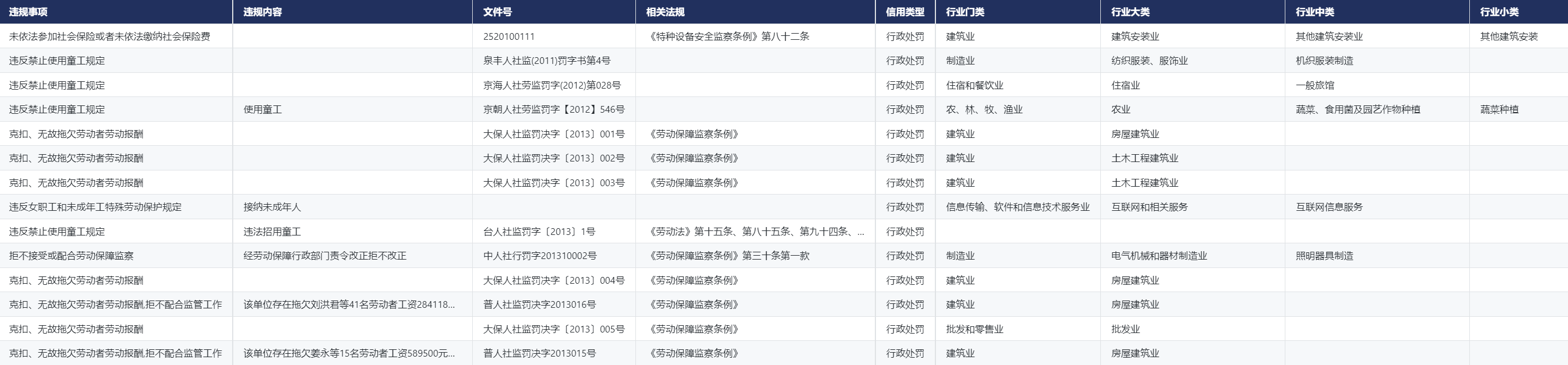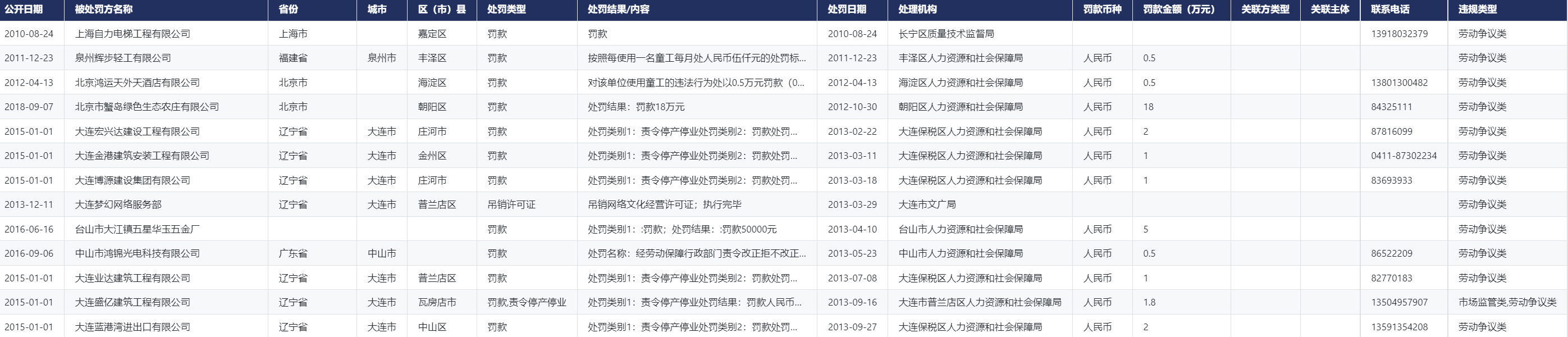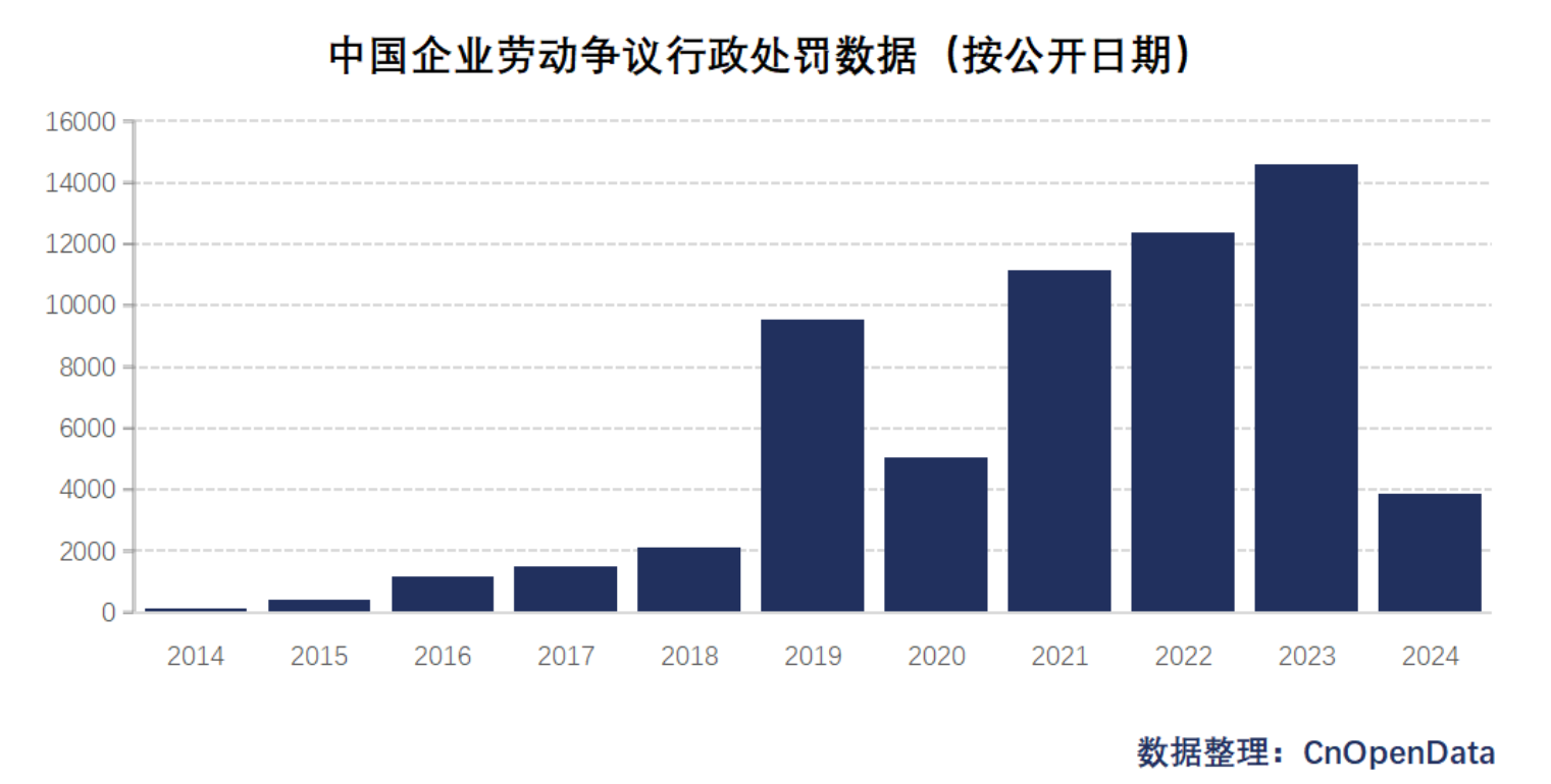 中国企业劳动争议行政处罚数据