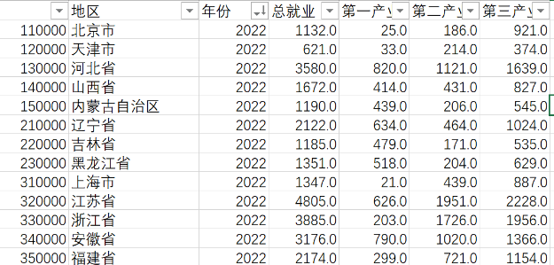 注:2019年辽宁以及2011、2012、2013年黑龙江仅有总就业人数,但无分三次产业就业人数。为填补数据空白针对各产业的数值进行了线性插补,并根据插补数值比例进行赋权,后拆分总就业人数。陕西和新疆部分年份,各产业数据总和与总就业人口数据存在差异,同样通过比例赋权并对总就业数分配。