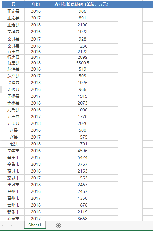 ③2016-2018年全国县级ZF农业保险补贴数据,其中包含产粮大县726个,非产粮大县755个