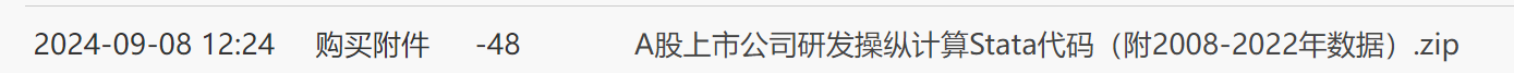 经管之家:momingiqmiao7 欢迎关注,分享更多实用的数据,独家发布,严禁转载获利,转载必究,有任何问题在可以帖子下方回复,及时回复 批量购买可享优惠 【关注】【帖子索引2023年】【帖子索引2022年】【帖子索引2021年】【使用常见问题】【点击查看更多帖子】【Stata软件下载】【Stata免费学习资料】