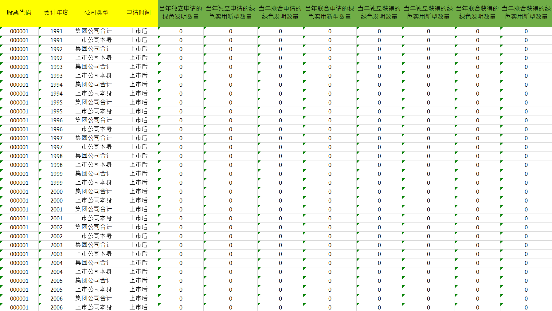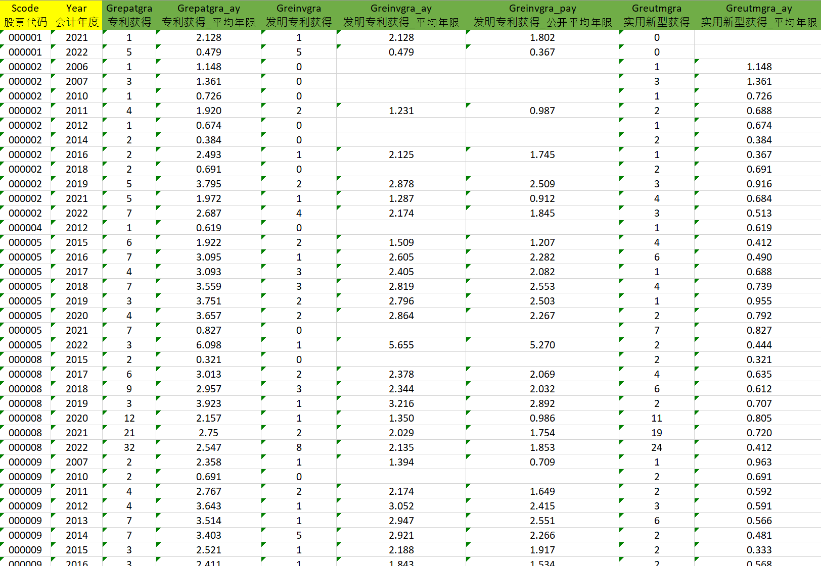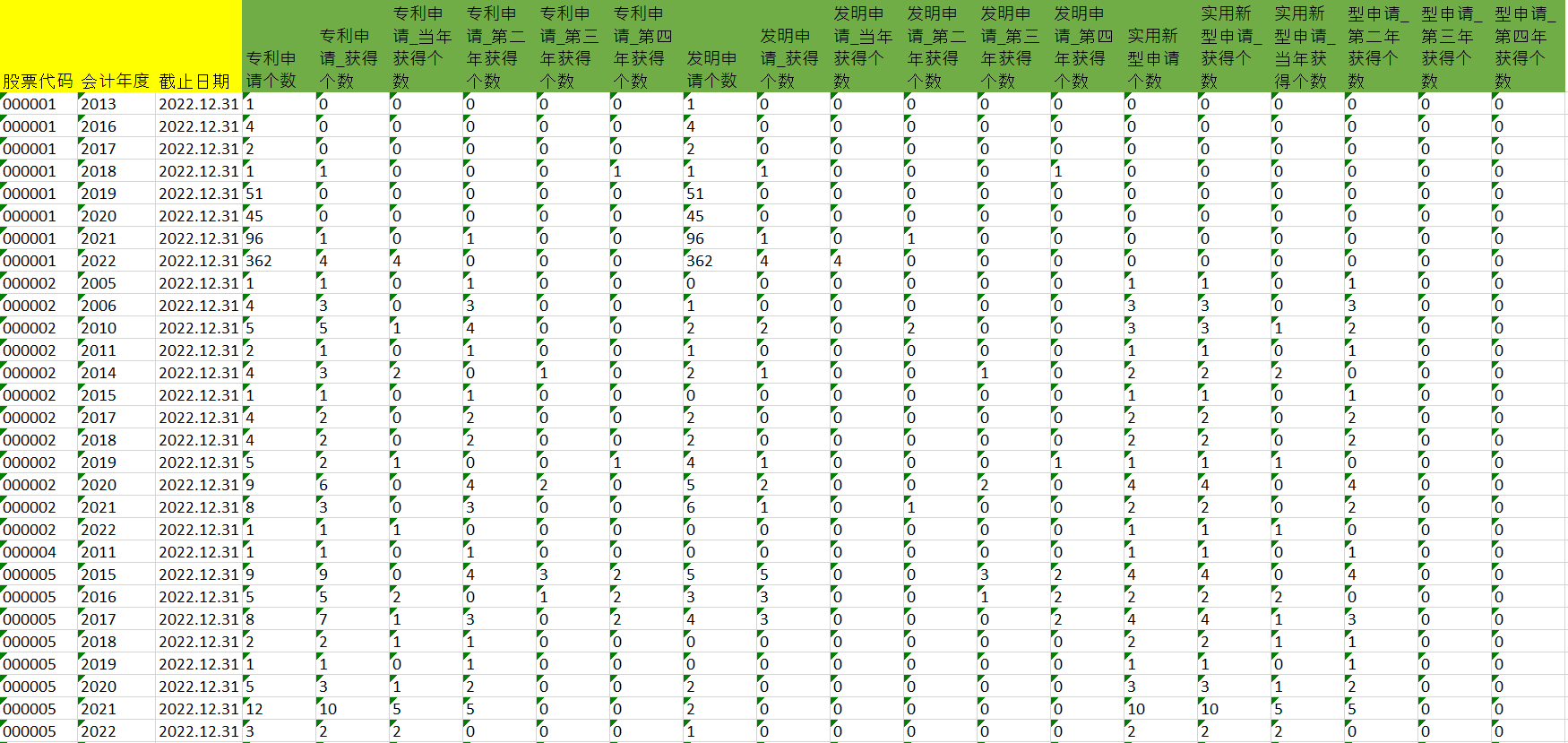- 1991-2022年上市公司绿色专利获得年限情况.xlsx