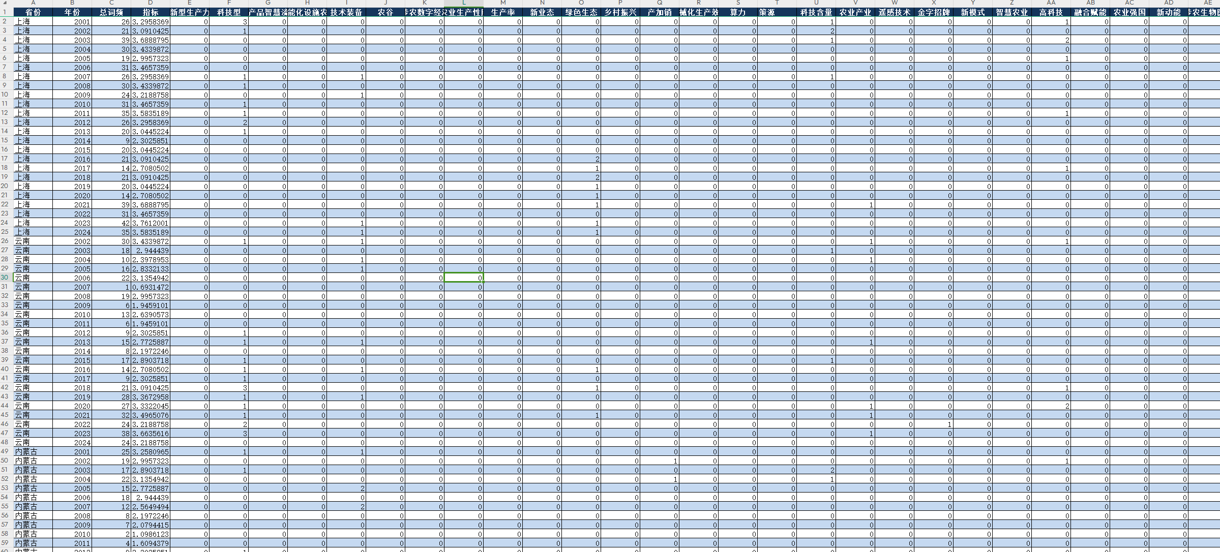 农业新质生产力政府关注度指数:2001-2024