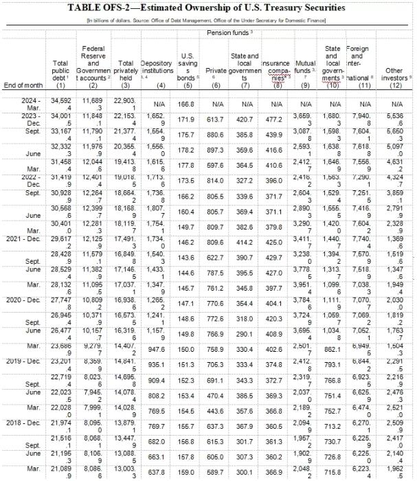 从美国国债的持有结构上看,自从美联储2022年一季度开始加息以来,包括企业、个人、对冲基金在内的其他投资者(Other investors) 增持了约43000亿美国国债。随着市场预期美联储加息周期结束,这些投资者可能转向大量抛售美国国债,2024年一季度已经抛售了约740亿美国国债,