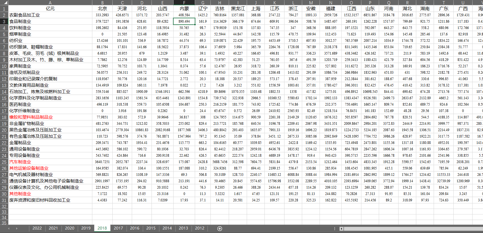 2012年-2022年制造业分行业分地区主营业务成本.xlsx