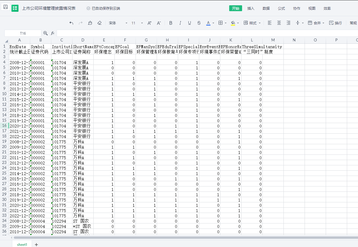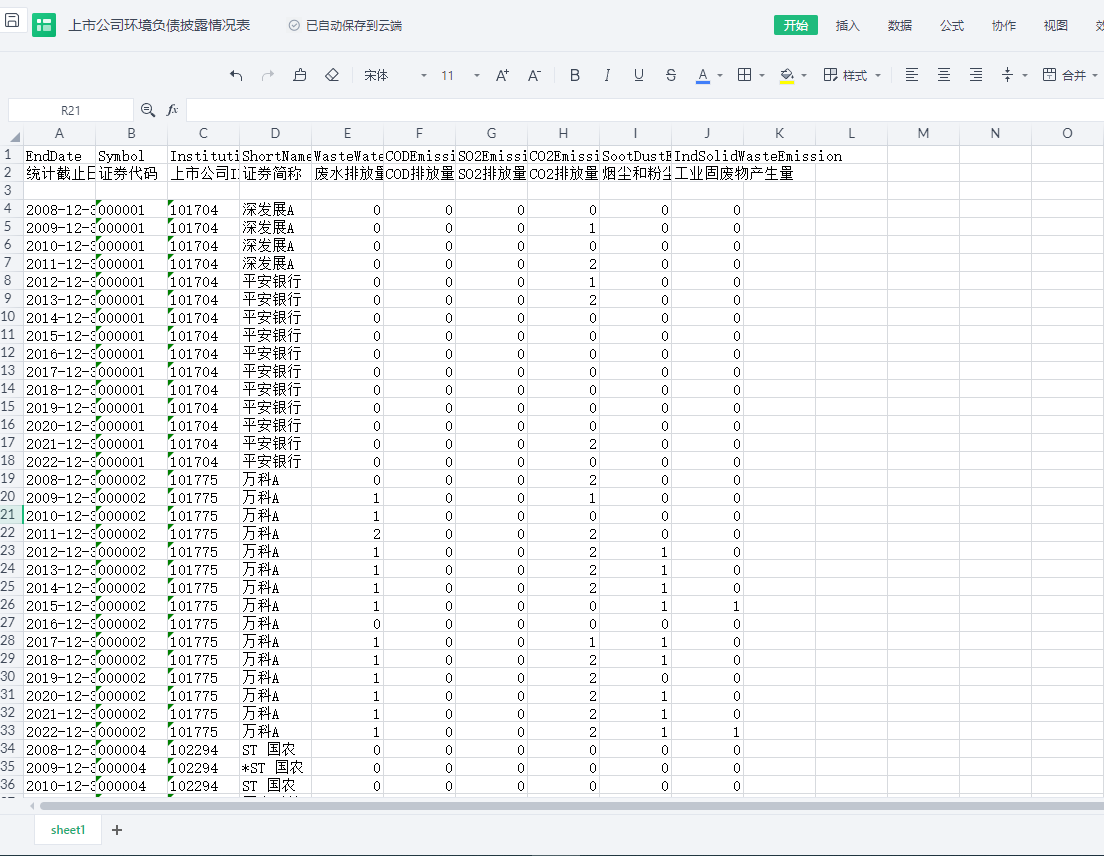 数据简介:上市公司环境研究是指对上市公司在环境保护和可持续发展方面的表现和做法进行评估和研究。这些评估可以包括上市公司的环境风险、环境管理制度和政策、环境负债和环境绩效等方面。
