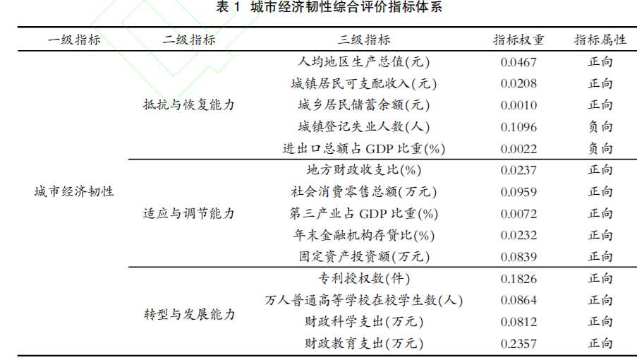 学界关于经济韧性的测度还在摸索之中,从描述性、解释性的案例说明,到复杂的指标统计, 再到利用计量模型计算恢复增长的速度,至今尚未形成较为统一的方法。近年来,在关于经济韧 性的实证研究中,大多数文献采用一个或若干个对经济冲击反应程度的核心变量进行测度,其中 比较常见的核心变量包括就业、GDP增长率、贸易量、固定资产投资等。这种方法需要设置一个作 为参考的基准状态,通过计算冲击后核心变量趋势值的缺口,即经济体实际产出与潜在产出之间 的差距,得到 受 到 冲 击 的 程 度 以 及 冲 击 后 的 恢 复 速 度。Fingleton等 (2012)、Doran和 Fingleton (2016,2018)则创新性地利用复杂空间计量模型对经济韧性进行测度,他们根据真实经济条件和 反事实的无外部冲击之间的结果差异,从恢复力方面测度经济韧性。