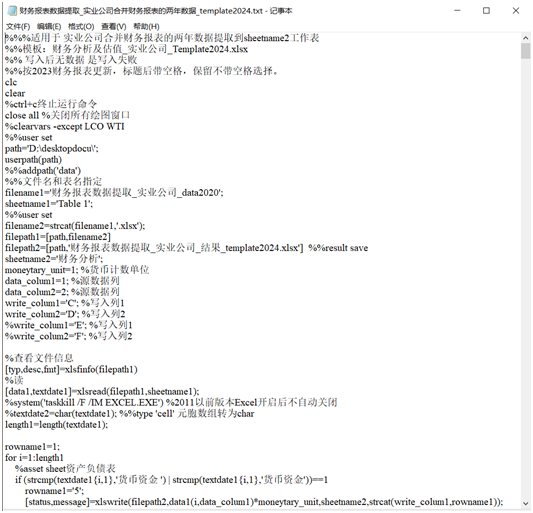 图3 “财务报表数据提取_实业公司合并财务报表的两年数据_template2024.txt”代码