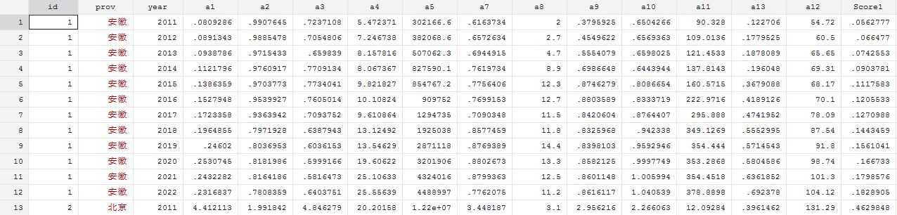 donotstop 发表于 2024-7-1 10:19 一共12个指标:a1:计算机软件服务业区位熵;a2:信息传输服务业区位熵;a3:信息传输、软件和信息技术服务 ...