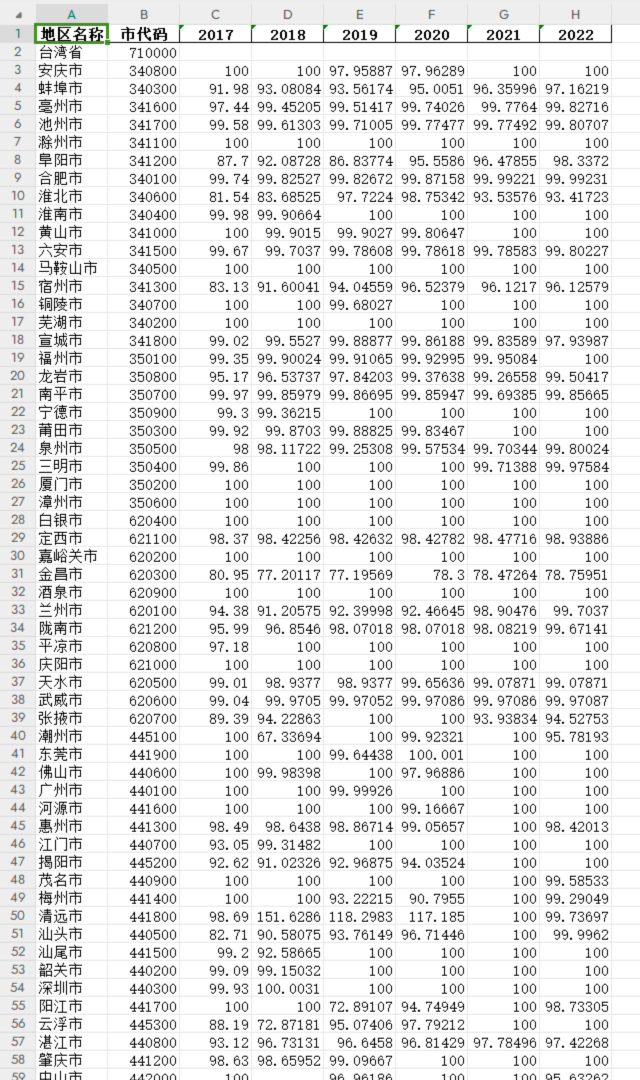 数据来源:中国城市统计年鉴,中国城市建设统计年[color=rgba(0, 0, 0, 0.9)]供水普及率_公共供水普及率_百分比2017-2022年