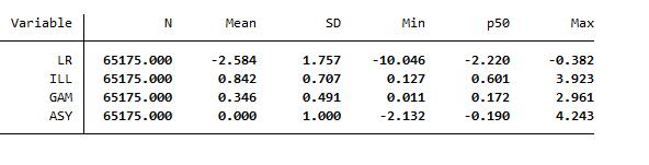 包含指标流动性比率指标LR和Amihud (2002)非流动性比率指标ILL以及收益反转指标GAM