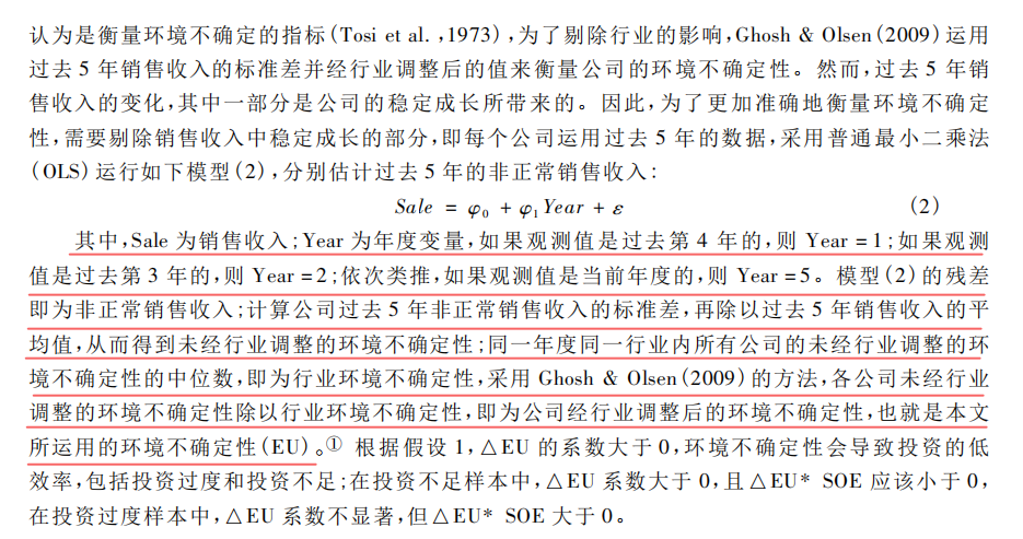 【方法】完全复刻申慧慧(2012)在《经济研究》上的做法 【被引量:1760次】! 使用 t 年至 t-4 年的营业收入的残差的标准差、 t 年至 t-4 年的营业收入的均值进行计算。
