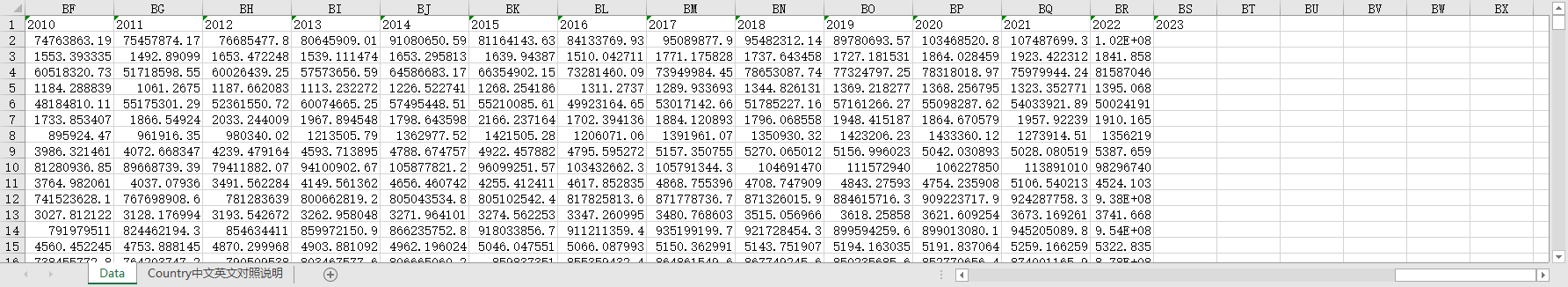 (数据是基于2024年7月2日的世行wdi的1960-2023数据整理的,部分国家、部分年份的数据有缺失,敬请留意,介意勿拍)