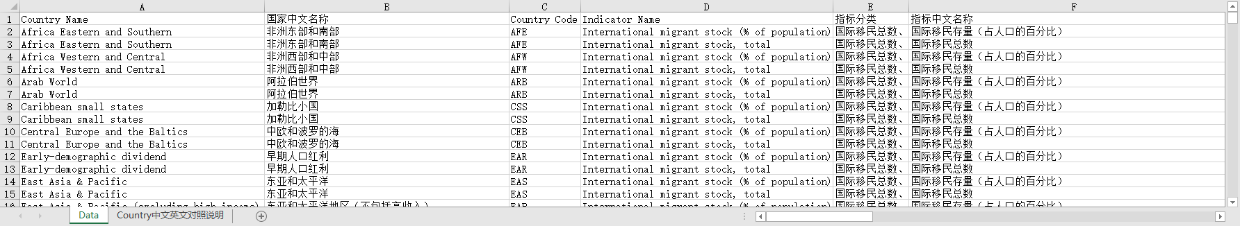 (国家、指标翻译成了中文,还有国家中英文说明等相关的对照表页签,方便使用)