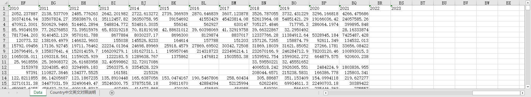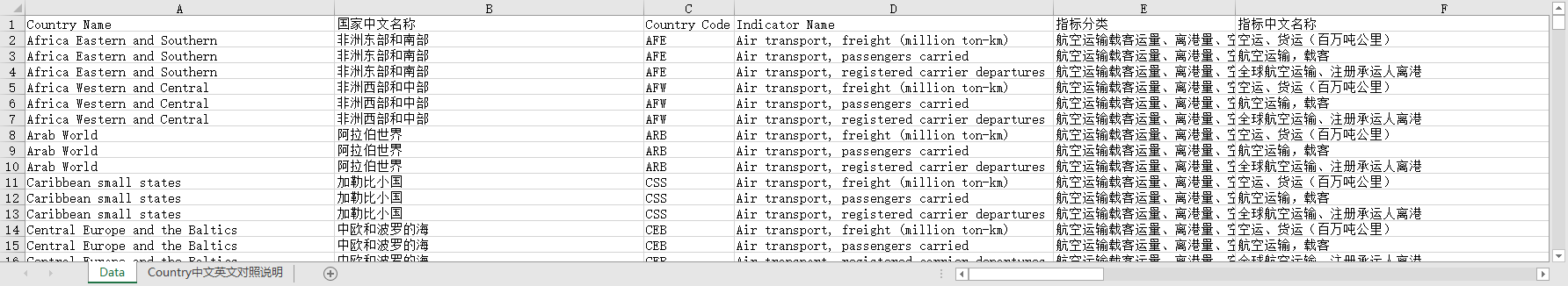 (国家、指标翻译成了中文,还有国家中英文说明等相关的对照表页签,方便使用)