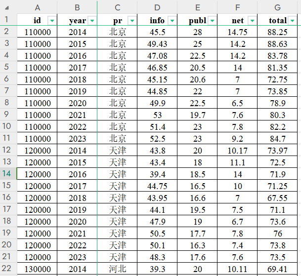 统计了由浙江大学公共政策研究院、浙江省公共政策研究院发布的中国ZF网络透明度指数,数据层级为省级,数据期间为2014-2023年。欢迎下载研究学习。