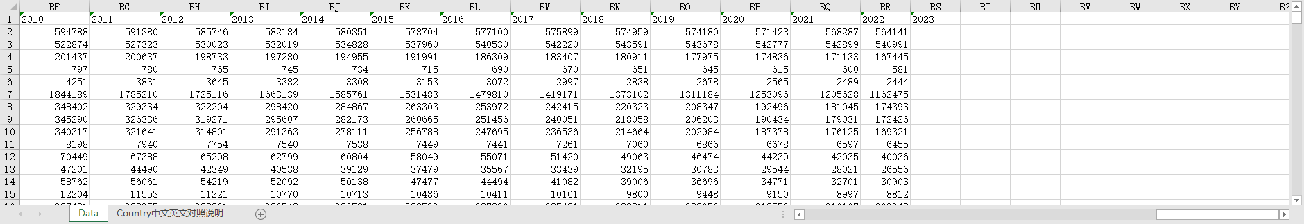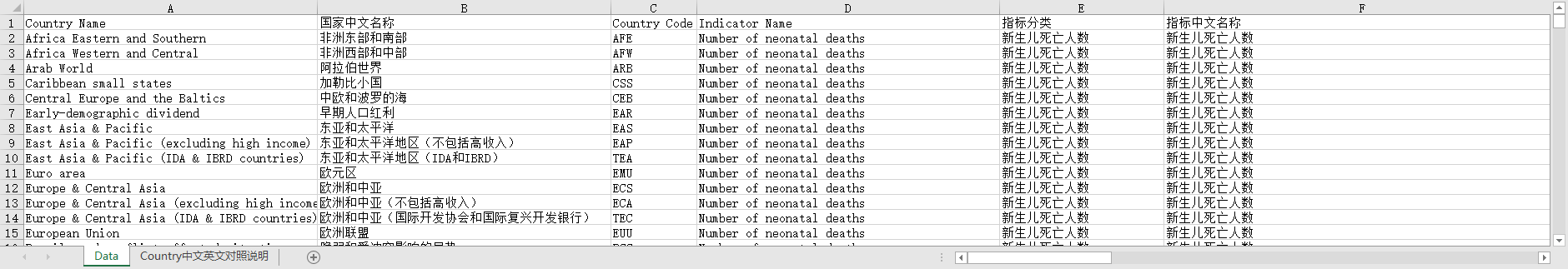 (国家、指标翻译成了中文,还有国家中英文说明等相关的对照表页签,方便使用)