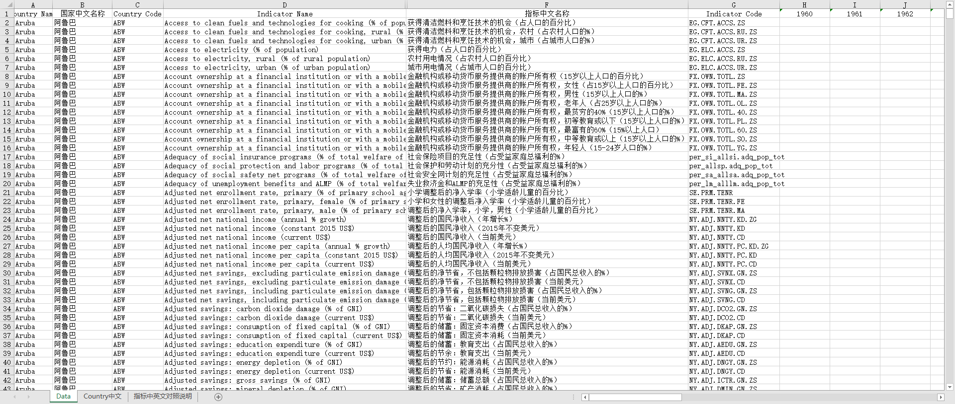 (国家、指标翻译成了中文,还有指标中英文说明等相关的对照表页签,方便使用)