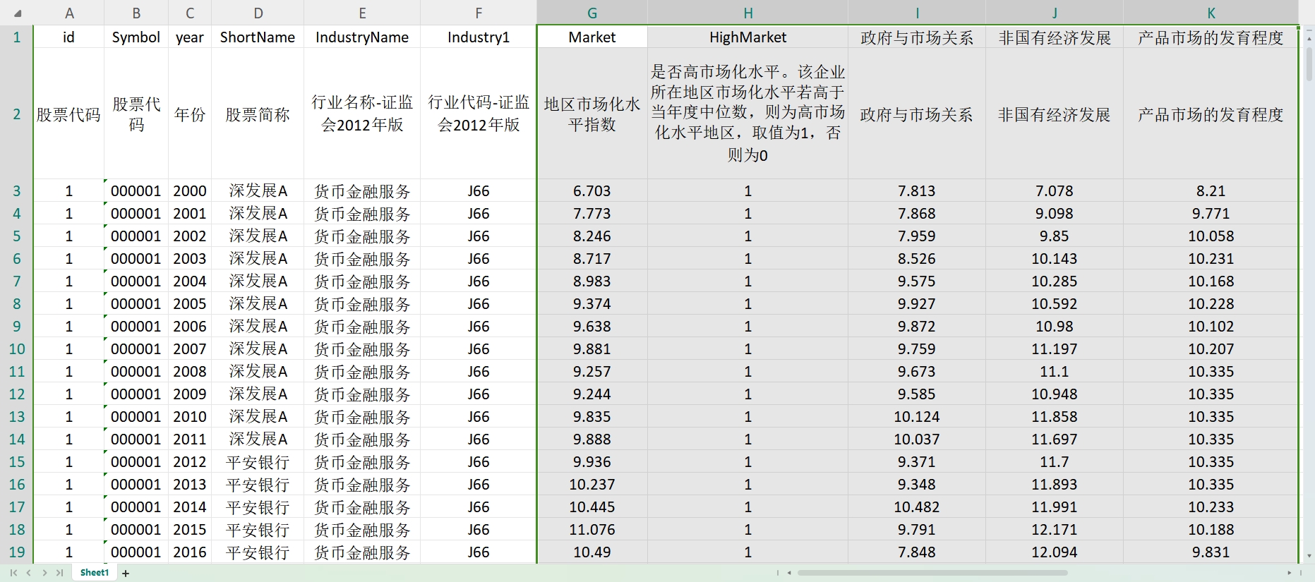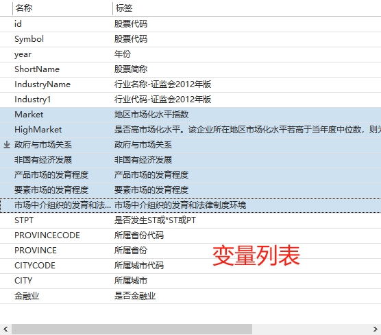 是否高市场化水平。该企业所在地区市场化水平若高于当年度中位数,则为高市场化水平地区,取值为1,否则为0