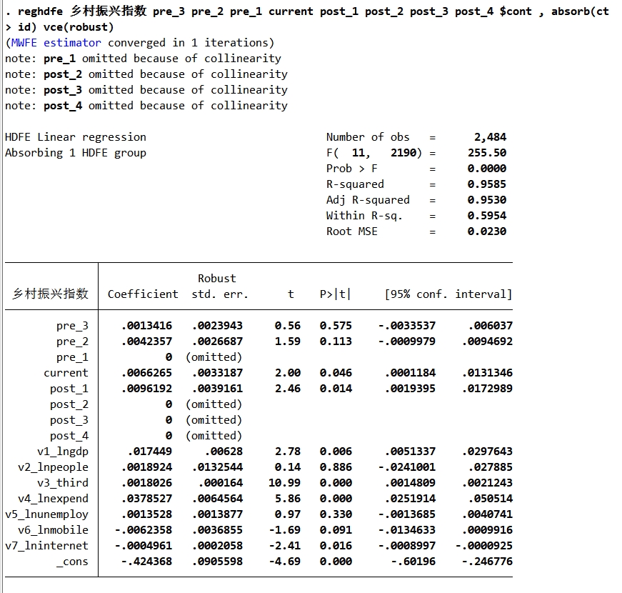 老师们,想请教一下平行趋势你们遇到post项全部omitt掉的情况一般是怎么解决的呢?