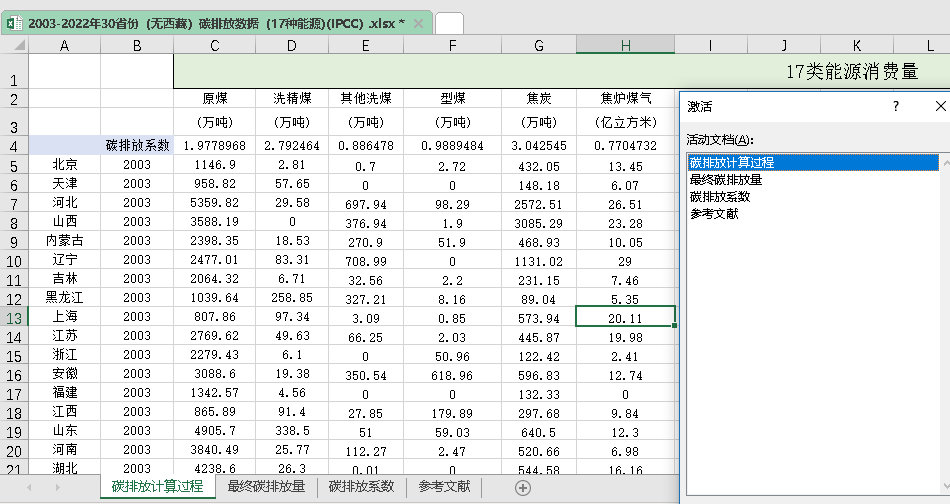 2003-2022年30省份(无西藏)碳排放数据(17种能源)(IPCC) .xlsx