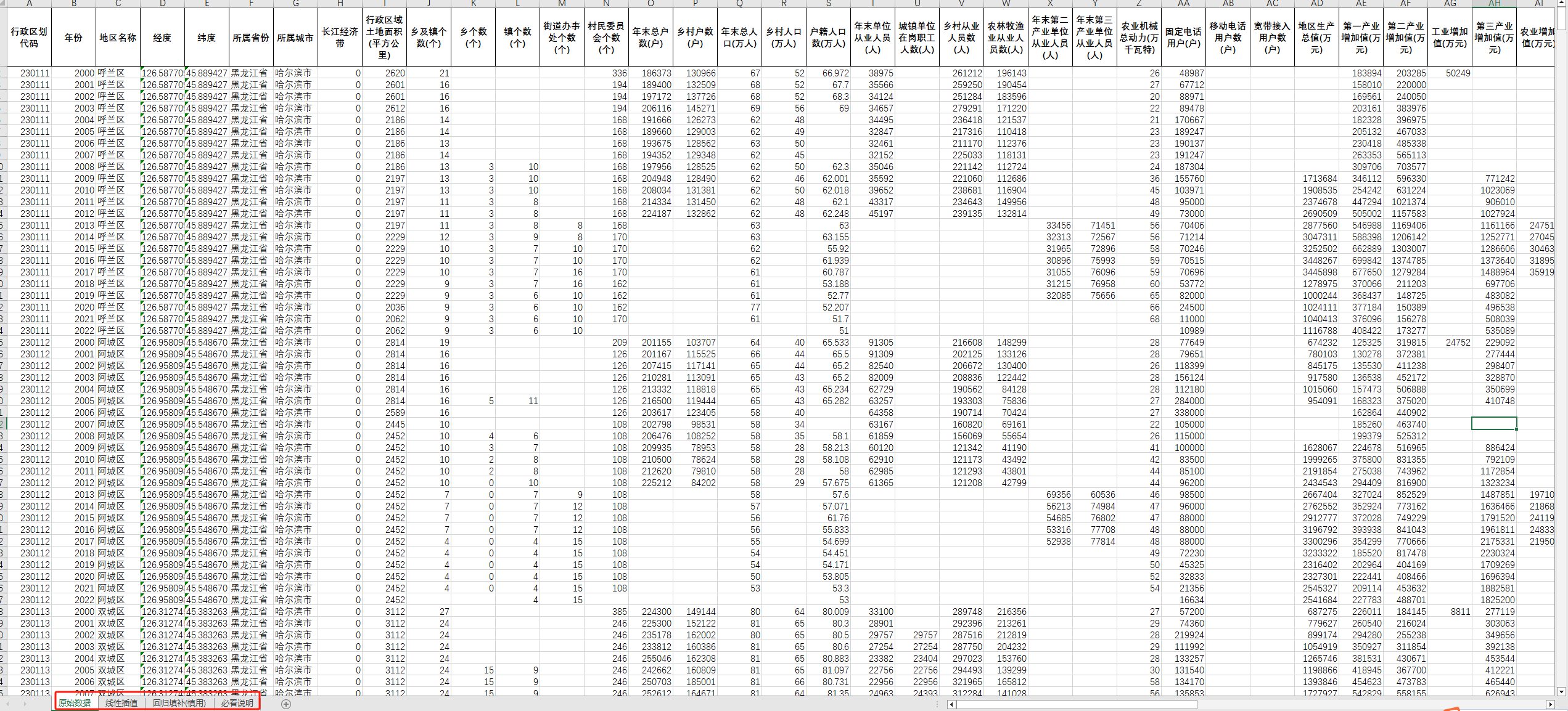 2001-2023年黑龙江省哈尔滨鸡西鹤岗等市73个区县中国县域统计年鉴面板数据经济农业工业等