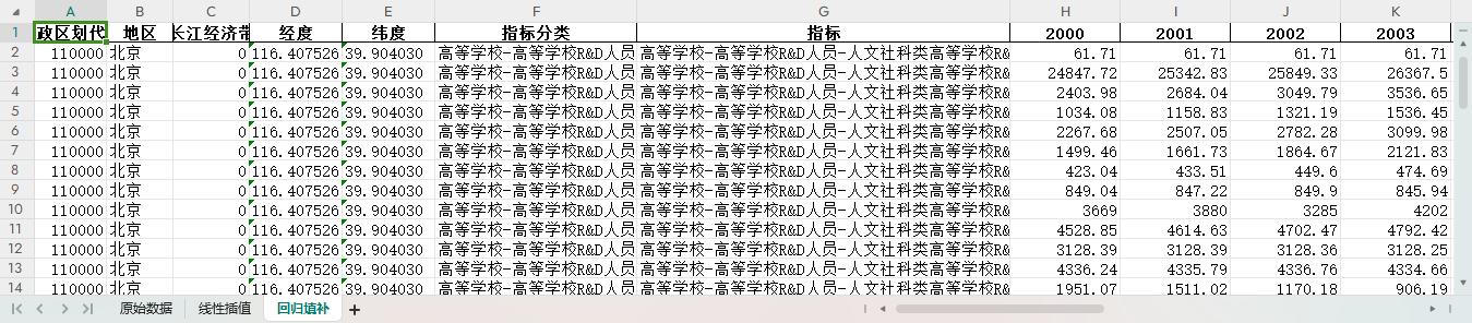 excel数据文件包原始数据(由于多年度指标不同存在缺失值)、线性插值、ARIMA填补三个版本,提供您参考使用。