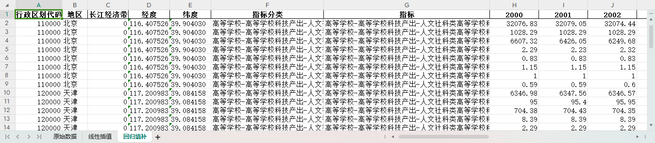 excel数据文件包原始数据(由于多年度指标不同存在缺失值)、线性插值、ARIMA填补三个版本,提供您参考使用。