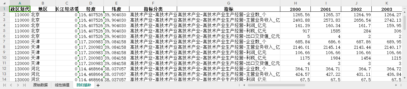 excel数据文件包原始数据(由于多年度指标不同存在缺失值)、线性插值、ARIMA填补三个版本,提供您参考使用。
