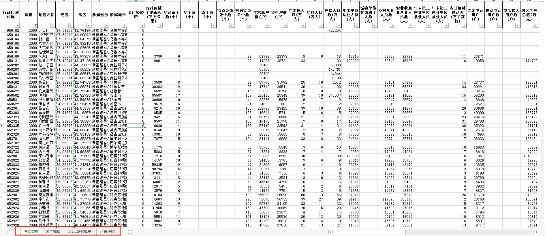 中国区县面板统计数据库(包含三个页签:原始数据、线性插值、ARIMA填补三个页签),收录了全国2725多个县域单位的基本情况、综合经济、农业、工业、教育、卫生、社会保障等方面的资料。