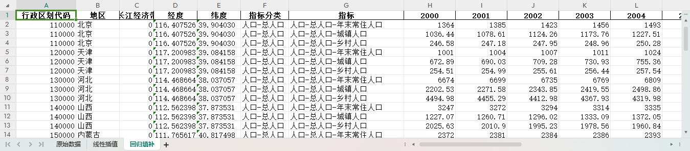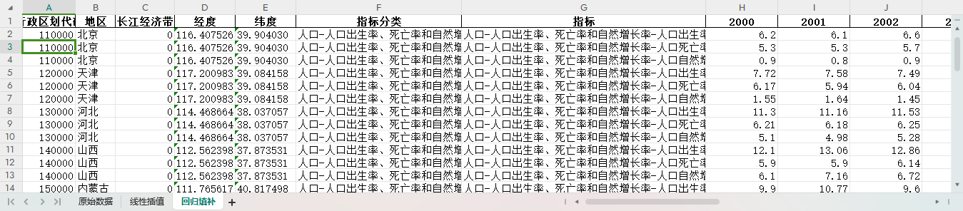 excel数据文件包原始数据(由于多年度指标不同存在缺失值)、线性插值、ARIMA填补三个版本,提供您参考使用。