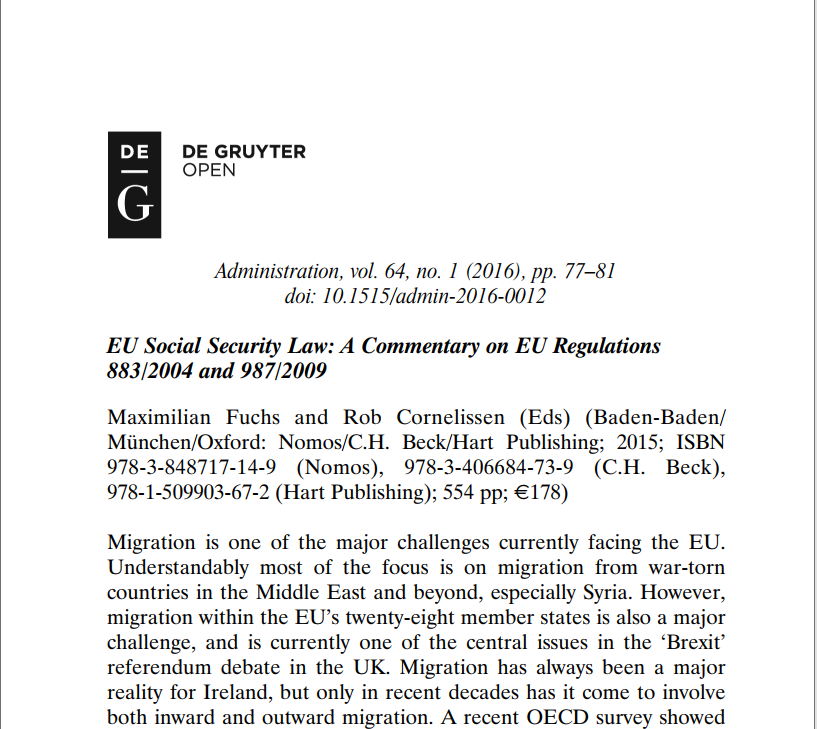 【文题(必填)】EU Social Security Law: A Commentary on EU Regulations
