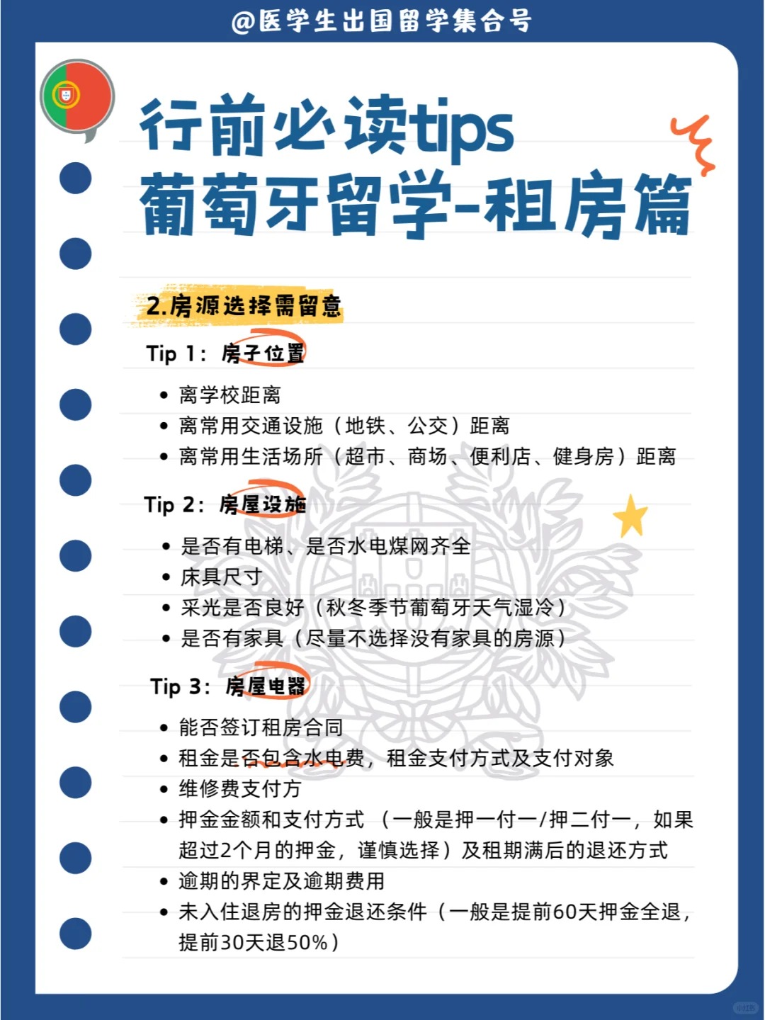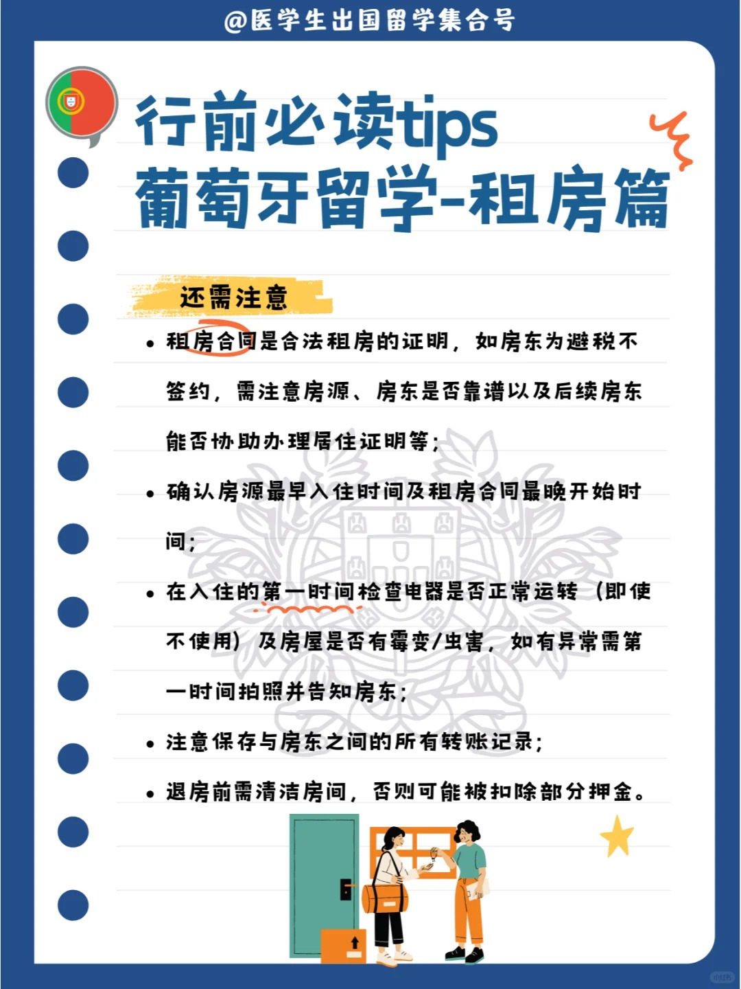 最近欧洲杯打得火热,相信前往葡萄牙留学的宝子们也在为葡萄牙队加油鼓劲~眼看留学日子越来越近了,在异国他乡,首先也是最重要是有个安全的落脚地方。如果目前还没有找到合适的房源,那确实要抓紧时间物色了,因为好的房源,都是非常抢手的!当然,我们在确定之前还是要多留心眼,以免不必要的烦恼哦~接下来我们也整理了葡萄牙留学行前锦囊给大家提供参考!